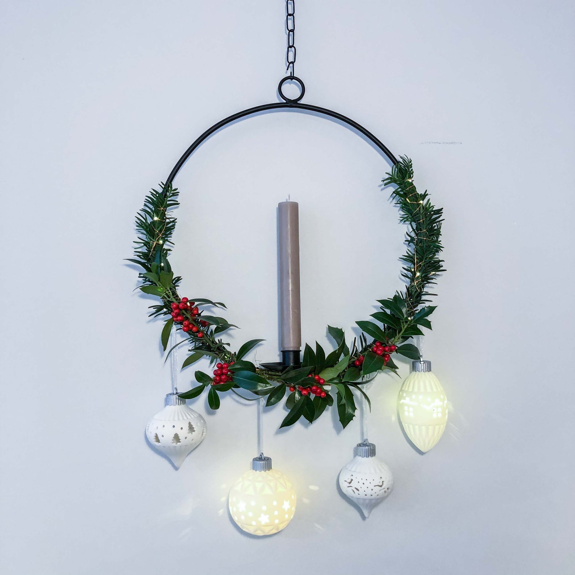 - PRAKTISCHE GRÖßE: mit einem Durchmesser von 34cm setzt der hängende Dekoring stilvolle Akzente an jeder Wand und Haustüre. Durch die 1,5 Meter lange und kürzbare Metallkette ist der Dekoring in der Höhe verstellbar
