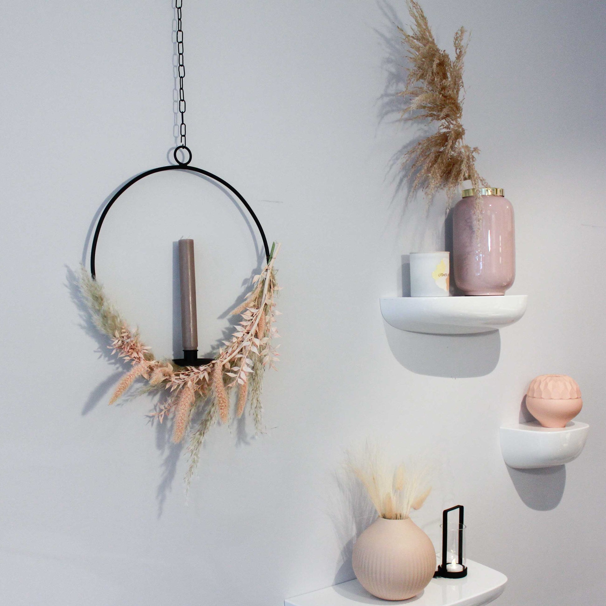 Der vielseitige Dekoring Ijus setzt stilvolle Akzente in jedem Zuhause. Durch die unendlichen Dekorations-Möglichkeiten passt sich der hängende Dekoring mit Kerzenhalter Ihrem Zuhause an und ist ein echter Hingucker. Als Kerzenhalter ist er das ganze Jahr über einsetzbar, vor allem in der Weihnachtszeit lässt er die Räume in einem warmen Licht erstrahlen und schafft somit eine einzigartige Wohlfühlatmosphäre. Für Kerzen mit einem Durchmesser von bis zu 2,2cm. Neben der Weihnachtszeit macht sich der hängende Dekoring mit Kerzenhalter natürlich in jeder Jahreszeit gut. Setzen Sie statt einer Kerze die mitgelieferte Vase in die Halterung um den Dekoring als Blumenkranz für den Frühling und den Sommer zu verzieren. Dafür bieten sich beispielsweise farbenfrohe Sonnenblumen an - Ihrer Kreativität sind jedoch keine Grenzen gesetzt. Der Hersteller adorist. hat sich besonderem Design und handgefertigten Produkten verschrieben. Hier fließt alle Leidenschaft in Liebhaberstücke. Unter dem Motto „handmade wonders“ kreiert das junge Team Interior- und Fashion-Highlights, die alle Sinne ansprechen.